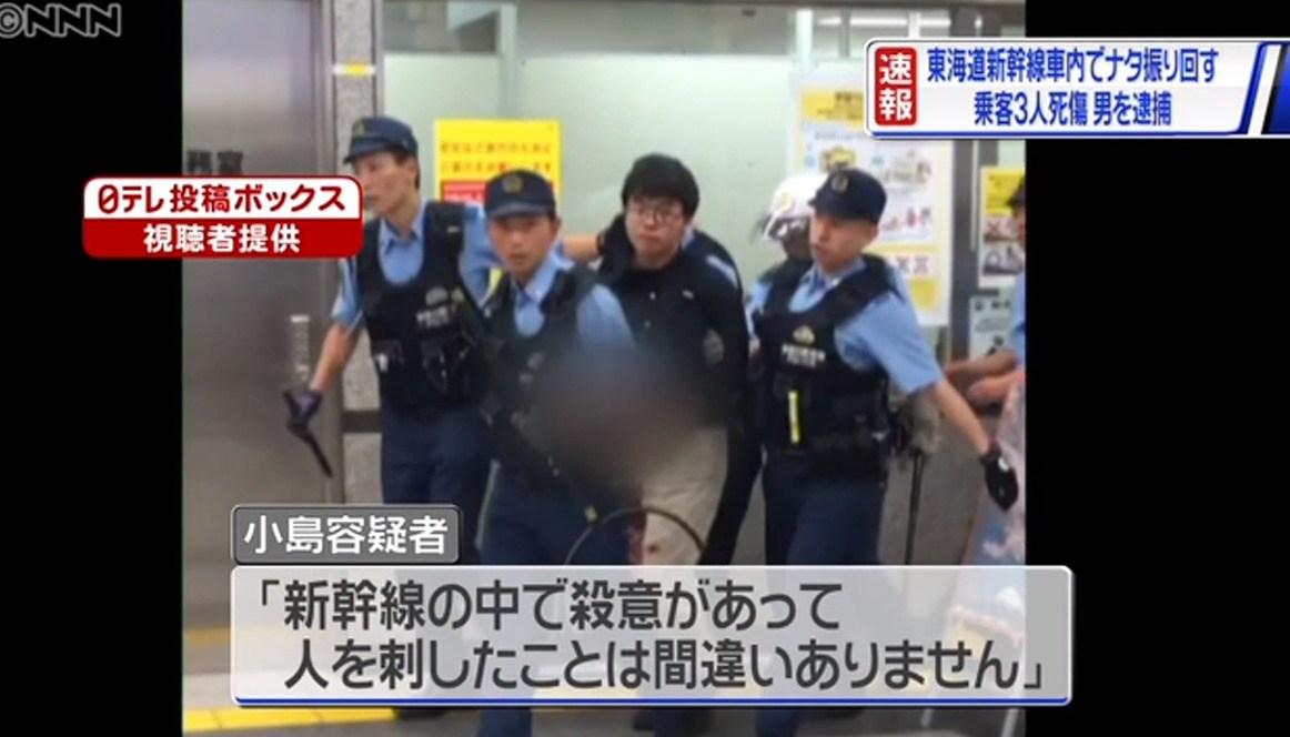 事件があったのは9日午後10時前。新横浜―小田原間を走行中の東京発新大阪行き東海道新幹線「のぞみ265号」の12号車で、小島容疑者が乗客の男女3人に切り付けた。