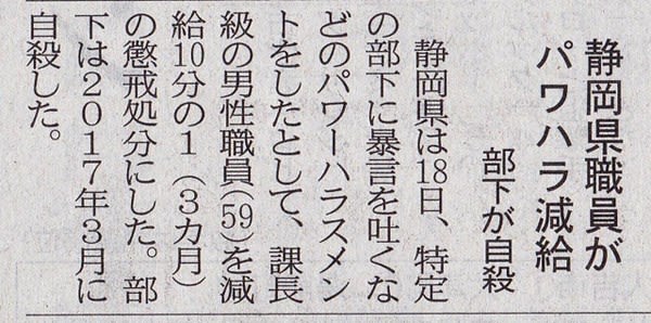 静岡県庁の職員は、上司のパワハラを部下が訴えようものなら、さらにその上司からパワハラを受けるという構造になっていたようです。