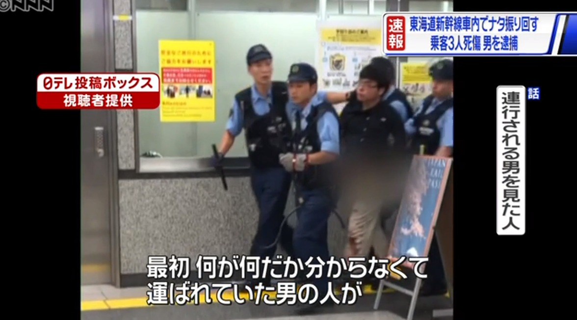 県警は、新幹線が緊急停車したJR小田原駅で同容疑者を現行犯逮捕した。同容疑者は東京から乗車したとみられ、名古屋までの切符を持っていた。