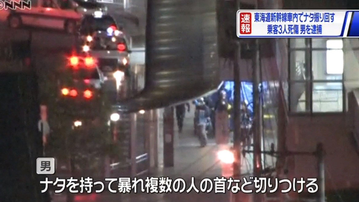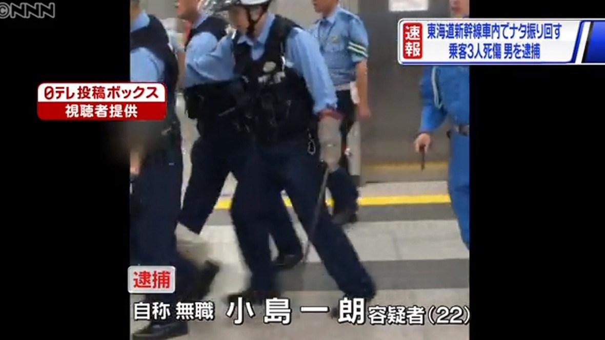 事件があったのは9日午後10時前。新横浜―小田原間を走行中の東京発新大阪行き東海道新幹線「のぞみ265号」の12号車で、小島容疑者が乗客の男女3人に切り付けた。